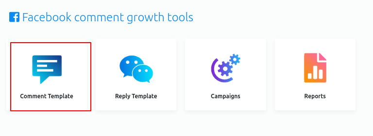 Instantly, the Comment growth tools page will appear. The page has three options — Comment Template, Reply Template, Campaigns, and reports.