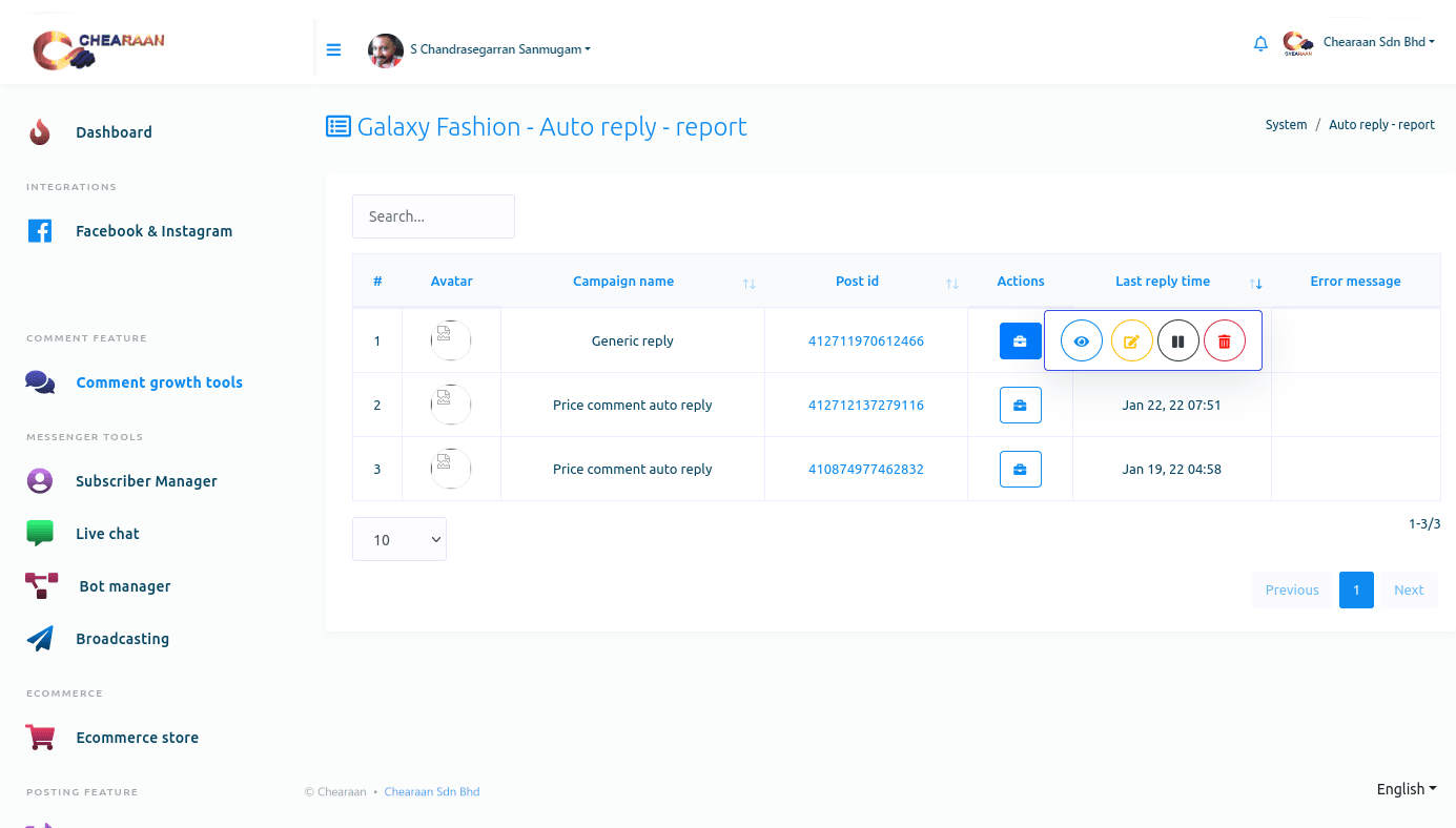 Initially, you can see the number of auto reply enabled posts and auto comment enabled posts.