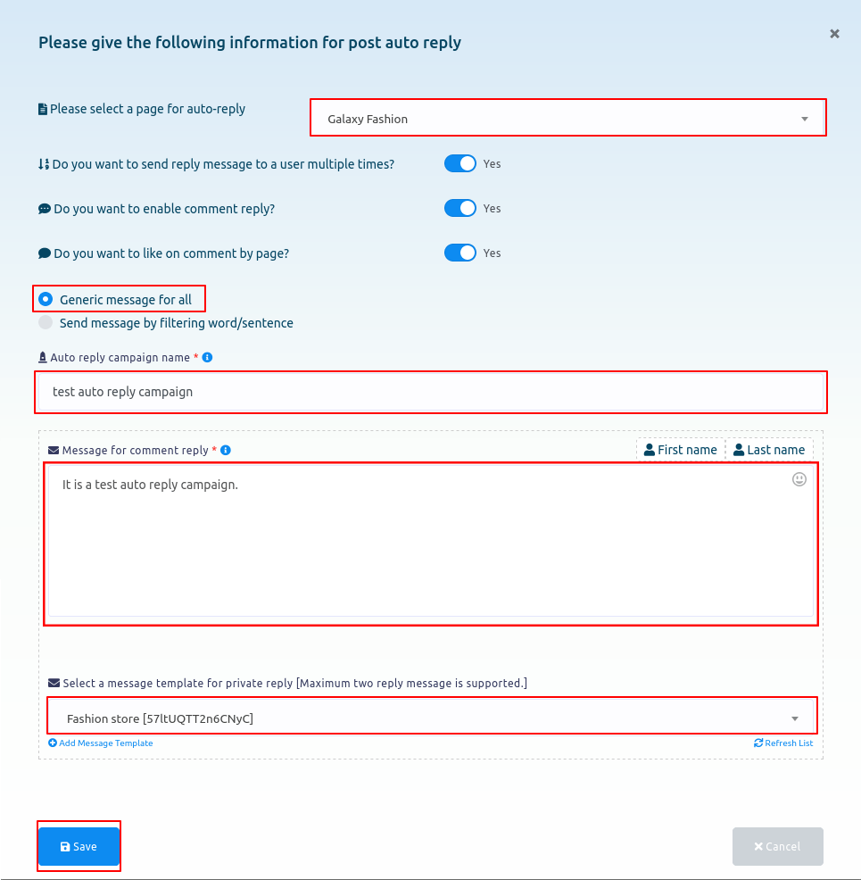 After that, you have to select a message template for private reply.