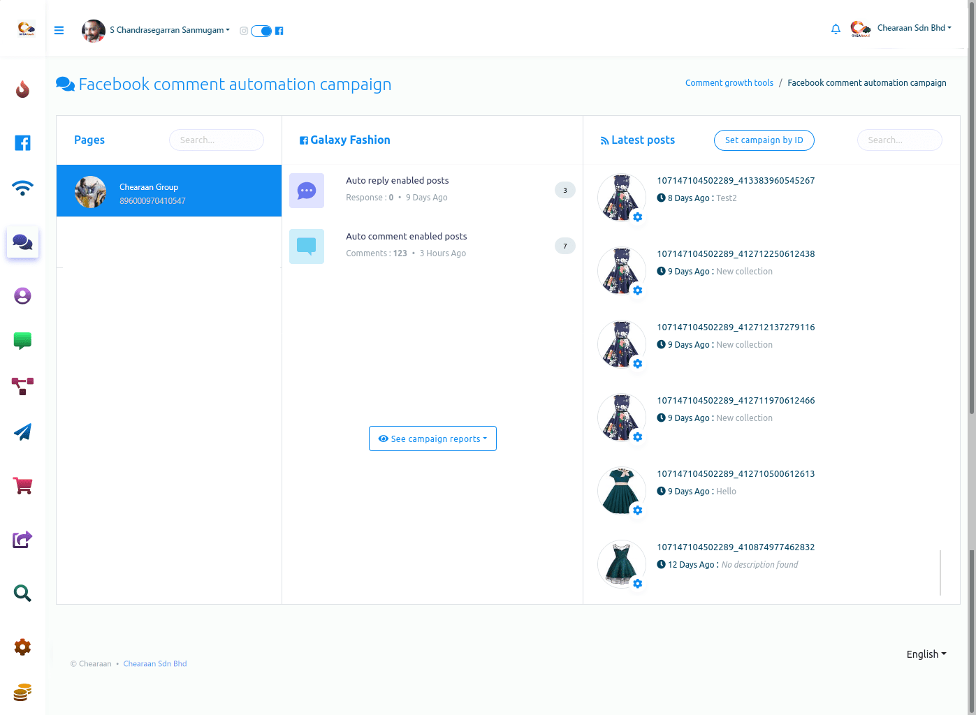 Instantly, a Facebook comment automation campaign page will appear.