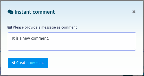 Instantly, a modal form will appear. Write a comment in the field and click Create comment button.