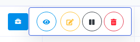 Click on the action button of a campaign and a pop-up menu of four buttons — eye icon button, edit button, pause button, and delete button.